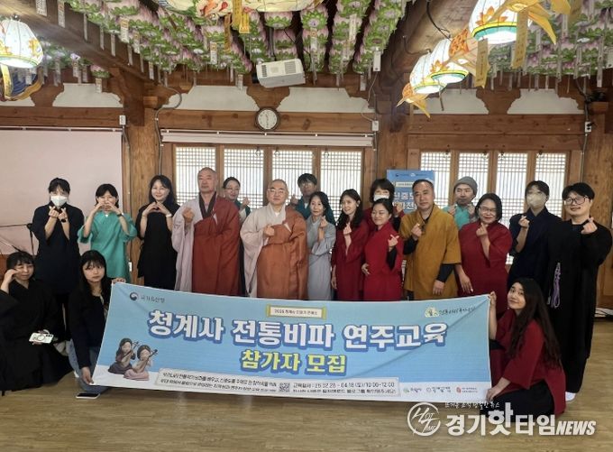 국가유산청의 ‘전통산사 국가유산 활용 공모 사업’으로 진행된 ‘신중도 속 비파천인들’은 청계사 극락보전 내 신중도(경기도 유형문화유산)에서 볼 수 있는 우리나라 전통악기 ‘비파’를 배우는 연주자 양성 교육으로, 2022년부터 올해까지 총 56명의 수료생을 배출했다.