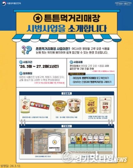 한편, ‘튼튼먹거리 매장’ 위치는 식품안전나라 누리집 내 ‘우리동네 식품안전정보’ 지도에서 확인할 수 있다.