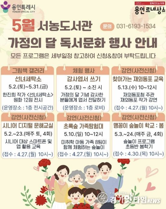 [경기핫타임뉴스=김삼영 기자] 용인특례시 서농도서관은 오는 5월 가정의 달을 맞아 다양한 세대를 아우르는 프로그램으로 이뤄진 ‘2026년 5월 독서문화행사’를 마련했다고 21일 밝혔다.