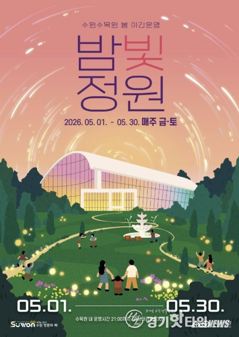 [경기핫타임뉴스=김삼영 기자] 수원특례시가 5월 1일부터 30일까지 매주 금·토요일 일월·영흥수목원에서 ‘2026년 수원수목원 봄 밤빛정원’을 연다.