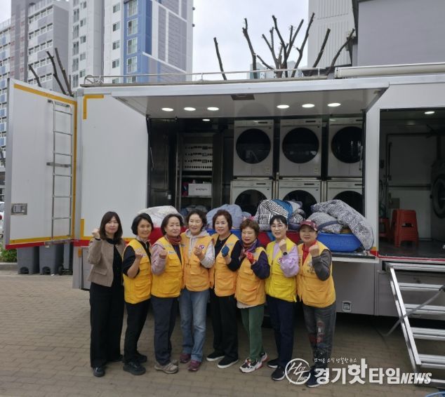 [경기핫타임뉴스=김삼영 기자] 의왕시 청계동 대한적십자사봉사회가 4월 20일, 포일숲속1단지에서 ‘찾아가는 이불세탁 봉사’를 실시했다.
