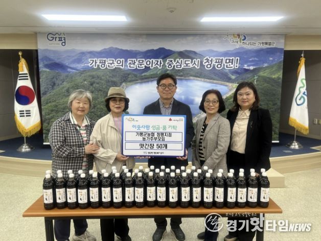[경기핫타임뉴스=김형철 기자] 가평군농협 청평지점 농가주부모임이 20일 지역 내 어려운 이웃을 위해 직접 만든 맛간장 50개를 청평면에 기탁했다.