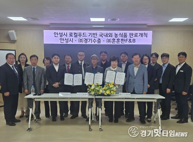 [경기핫타임뉴스=김삼영 기자] 안성시 농업기술센터는 지난 4월 17일, 안성시 농특산물 및 농식품의 국내외 판로 확대를 위해 ㈜경기수출, ㈜훈훈한F&B와 전략적 업무협약(MOU)을 체결했다고 밝혔다.