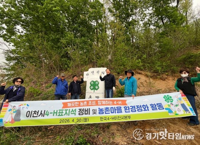 [경기핫타임뉴스=김형철 기자] 한국4-H이천시본부는 지난 20일 이천시 일원에서 회원 10명이 참여한 가운데 4-H 표지석 정비와 마을 환경정화 활동을 실시했다. 이는 지역 내 4-H 표지석의 체계적인 관리와 쾌적한 마을환경 조성을 위해 추진됐다.