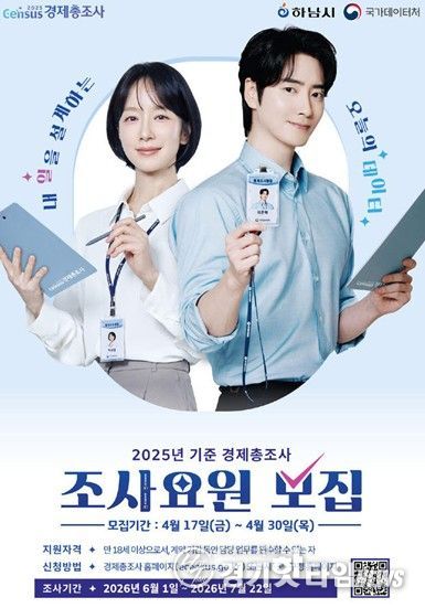 [경기핫타임뉴스=김형철 기자] 하남시는 4월 17일부터 30일까지 ‘2025년 기준 하남시 경제총조사’ 수행을 위한 조사요원을 모집한다고 밝혔다.