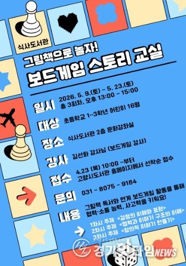 [경기핫타임뉴스=김형철 기자] 고양특례시 식사도서관이 오는 5월 9일부터 공공도서관 독서문화 프로그램 ‘그림책으로 놀자! 보드게임 스토리 교실’을 운영한다.