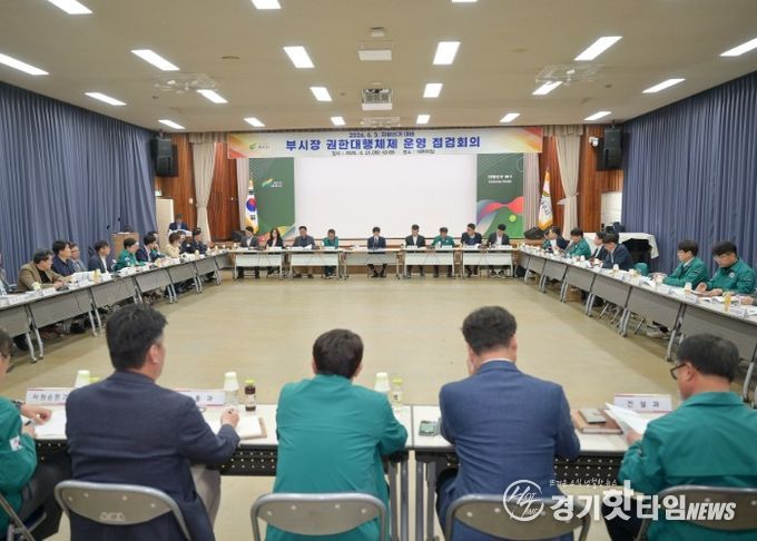 [경기핫타임뉴스=김형철 기자] 여주시는 지난 4월 21일 시청 4층 대회의실에서 김광덕 부시장 주재로 ‘부시장 권한대행체제 운영 점검회의’를 개최했다. 이번 회의는 20일 여주시장이 제9회 전국동시지방선거 시장예비후보로 등록함에 따라 부시장 권한대행 체제 전환으로 시정의 안정과 업무의 연속성을 유지하고 행정 공백을 최소화하고자 마련했다.