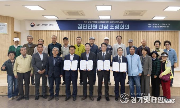 [경기핫타임뉴스=김형철 기자] 연천군은 21일, 연천군청 대회의실에서 국민권익위원회 부위원장 겸 사무처장이 주재하는 '연천 구읍건널목 재통행을 위한 구읍과선교 설치' 집단민원 현장 조정 회의를 개최했다고 밝혔다.