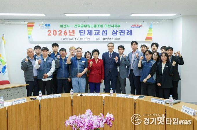 [경기핫타임뉴스=김형철 기자] 이천시와 전국공무원노동조합 이천시지부는 4월 21일 시청 5층 다올실에서 노사 양측 대표 교섭위원인 김경희 이천시장과 이재인 공무원노조 지부장 등 노사 양측 교섭위원 20여명이 참석한 가운데‘2026년도 공무원노조 단체교섭 상견례’를 가졌다.