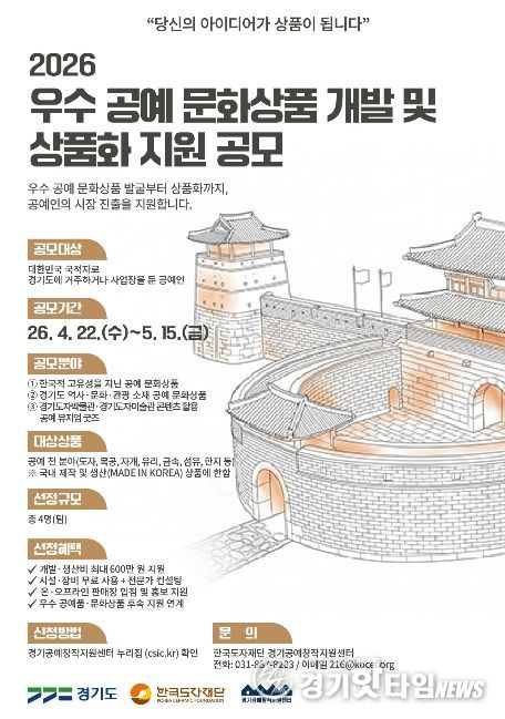 [경기핫타임뉴스=김삼영 기자] 한국도자재단이 ‘2026 공예 문화상품 개발 및 상품화 지원 사업’을 본격 추진한다고 22일 밝혔다.