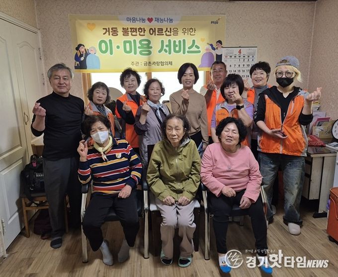 [경기핫타임뉴스=김형철 기자] 파주시 금촌1동은 지난 21일 금촌10통 경로당(동현아파트)에서 관내 어르신들을 위한 ‘이미용 봉사’와 ‘찾아가는 이동상담센터’를 함께 운영했다.
