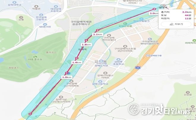 [경기핫타임뉴스=김형철 기자] 구리시는 수도권 광역급행철도 GTX-B 개통 이후 경춘선 선로의 철도 운행 횟수가 많이 늘어날 것으로 예상됨에 따라, 갈매동 일대 경춘선 선로 주변 약 3km 구간을 '소음·진동관리법' 제27조에 따라 4월 22일부로 교통소음(철도) 관리지역으로 지정한다고 밝혔다.