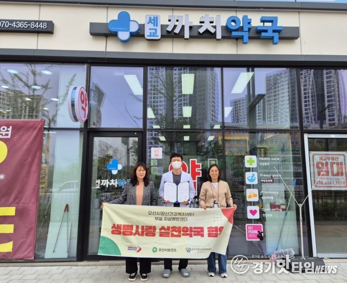 [경기핫타임뉴스=김삼영 기자] 오산시정신건강복지센터 부설 자살예방센터는 지역사회 기반 생명존중 문화 확산과 자살예방 체계 강화를 위해 지난 20일과 21일 이틀간 관내 약국 4곳과 ‘생명사랑약국’ 업무협약을 체결했다고 밝혔다.