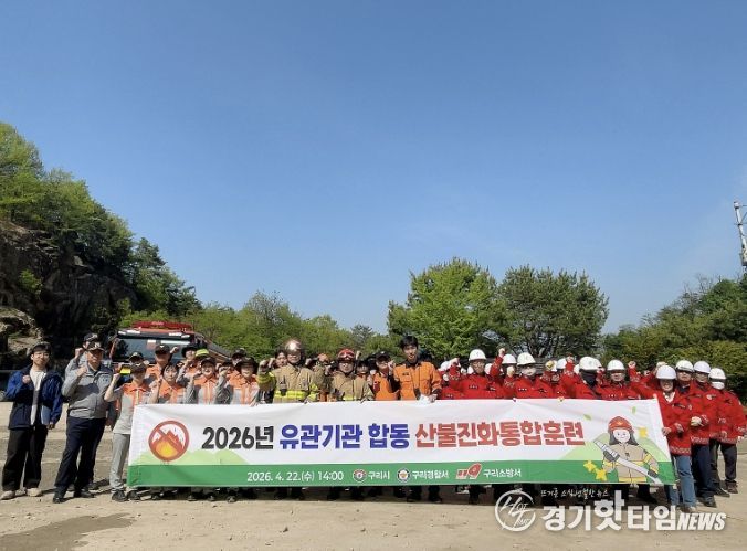 [경기핫타임뉴스=김형철 기자] 구리시는 산불 발생 시 신속하고 체계적인 대응능력 강화를 위해 지난 4월 22일 고구려대장간마을 주차장에서 ‘2026년 유관기관 합동 산불 진화 통합훈련’을 실시했다고 밝혔다.