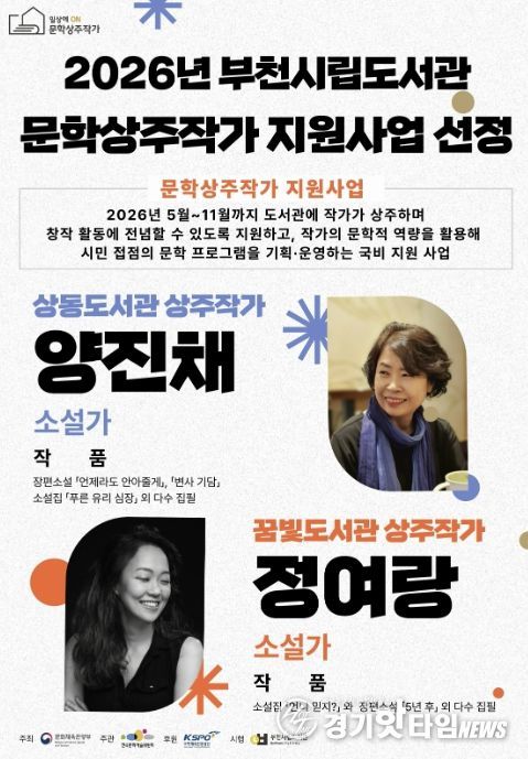 [경기핫타임뉴스=김형철 기자] 부천시립상동도서관과 꿈빛도서관은 문화체육관광부가 주관하고 한국문화예술위원회가 주최하는 ‘2026년 도서관 상주작가 지원사업’ 공모에 선정돼 5월부터 시민 대상 문학 프로그램을 운영한다.