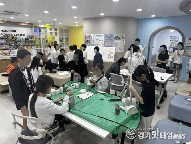 [경기핫타임뉴스=김형철 기자] 회천청소년문화의집은 양주시가 건립하고 한국YMCA전국연맹(양주YMCA)가 위탁 운영하는 청소년수련시설로 2022년 1월 28일 개관했다. 회천청소년문화의집은 4월 18일 토요일 ‘회천노리터’를 환경보호를 주제로 다양한 만들기와 놀이부스를 관내에서 운영했다고 밝혔다.