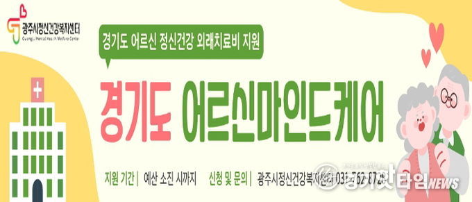 [경기핫타임뉴스=김삼영 기자] 광주시정신건강복지센터는 지역 내 어르신의 정신건강 증진과 치료 접근성 강화를 위해 ‘2026년 어르신 마인드 케어 치료비 지원 사업’을 추진 중이라고 23일 밝혔다.