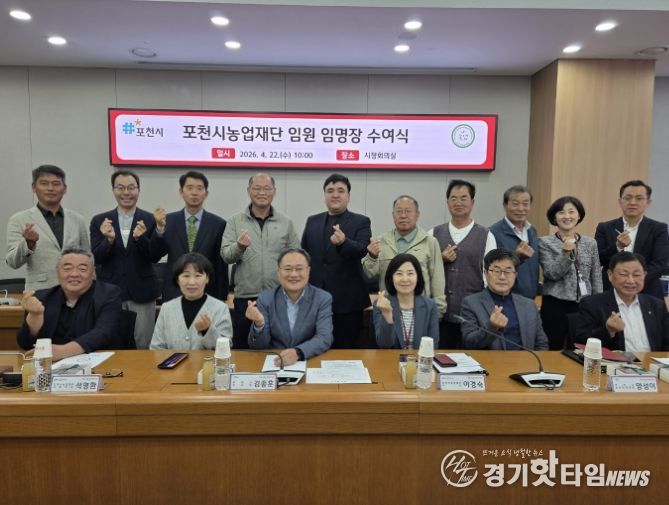 [경기핫타임뉴스=김형철 기자] 재단법인 포천시농업재단은 4월 22일 공개모집 절차를 통해 선발된 비상임 이사 및 감사 13명을 대상으로 임명장 수여식 개최하고 2028년까지 운영되는 제3대 이사회 출범을 알렸다.