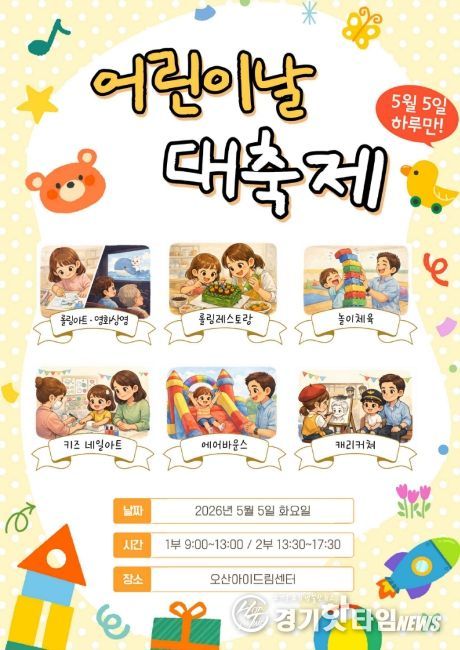 [경기핫타임뉴스=김삼영 기자] 오산시가 운영하는 오산아이드림센터가 어린이날을 맞아 온 가족이 함께 즐길 수 있는 특별 체험행사를 마련한다.