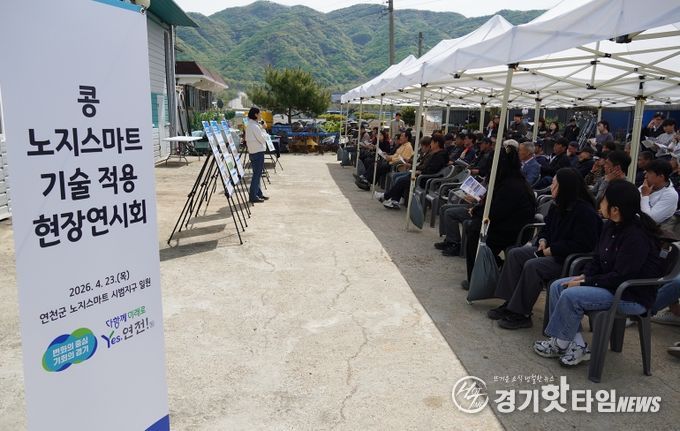[경기핫타임뉴스=김삼영 기자] 경기도농업기술원은 23일 연천군 연천읍 옥산리 일원에서 ‘콩 노지스마트 기술 적용 현장 연시회’를 열고, 최근 주목받고 있는 노지 스마트농업 기술을 선보였다.