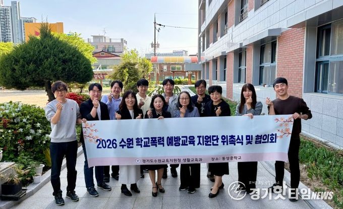 [경기핫타임뉴스=김삼영 기자] 수원교육지원청은 4월 22일, 23일 양일간‘2026 학교폭력예방 지원단 및 학교폭력 사안처리 현장지원단 위촉식 및 협의회’를 개최했다. 총 23명의 지원단이 위촉장을 받고, 학교폭력 예방 및 학교폭력 사안 처리 대응 체계 구축을 위해 머리를 맞댔다.