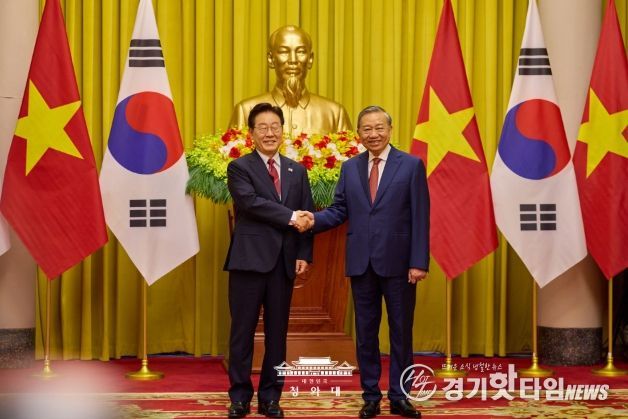 [경기핫타임뉴스=김삼영 기자] 베트남을 국빈 방문한 이재명 대통령은 22일(현지시간) "양국은 2030년까지 교역 규모 1500억 불 목표 달성을 위해 교역·투자 협력을 더욱 호혜적으로 발전시켜 나가기로 했다"고 밝혔다.