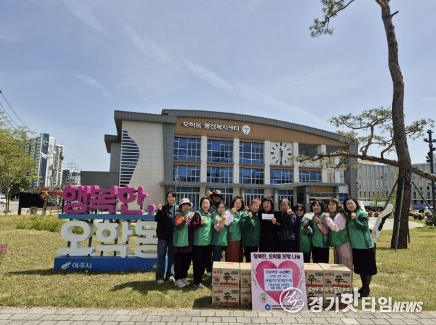 [경기핫타임뉴스=김형철 기자] 2026년 4월 23일 새마을지도자오학동부녀회는 지난 여주 싸리산 강변축제에서 운영한 부스 수익금 100만 원을 오학동행정복지센터에 전달하며 지역 사회 나눔의 아름다운 전통을 이어갔다. 또한, 라면 10박스도 함께 기부하며 나눔의 의미를 더했다.