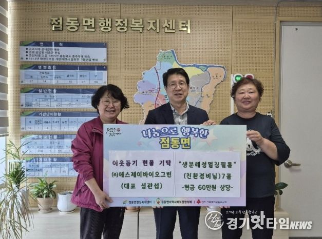 [경기핫타임뉴스=김형철 기자] 점동면지역사회보장협의체는 오는 2026년 5월 6일 추진 예정인 '행복텃밭, 고구마 심기' 사업과 관련하여 ㈜에스제이바이오그린(대표 심관섭)으로부터 친환경 비닐 7롤(환가액 약 60만 원 상당)을 후원받았다.