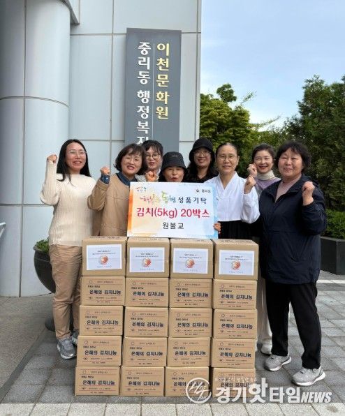 [경기핫타임뉴스=김형철 기자] 이천시 중리동행정복지센터는 원불교가 지역 내 어려운 이웃들을 위해 김치(5kg) 20박스를 기탁하며 따뜻한 나눔을 실천했다고 밝혔다. 이번 기탁은 경제적 어려움과 돌봄 공백 등으로 일상생활에 어려움을 겪고 있는 취약계층 이웃들에게 조금이나마 힘이 되고자 마련됐다.