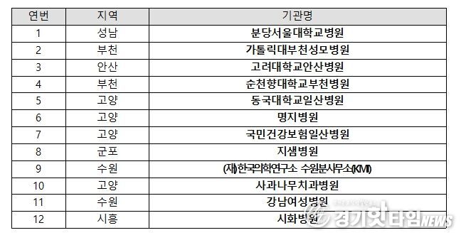 대표단에는 분당서울대학교병원, 가톨릭대학교부천성모병원, 고려대학교안산병원, 순천향대학교부천병원, 동국대학교일산병원, 명지병원, 국민건강보험일산병원, 지샘병원, (재)한국의학연구소(KMI) 수원분사무소, 사과나무치과병원, 강남여성병원, 시화병원 등 도내 의료기관 12개소가 참여했다.
