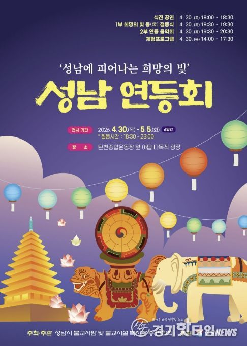 [경기핫타임뉴스=김삼영 기자] ‘2026 성남 연등회’가 오는 4월 30일부터 5월 5일까지 엿새간 분당 탄천 야탑 다목적광장(탄천종합운동장 앞)에서 열린다.