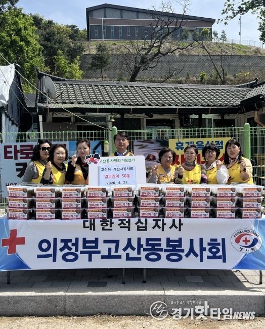 [경기핫타임뉴스=김형철 기자] 의정부시 고산동주민센터는 4월 23일 고산동 적십자봉사회(회장 이미애)가 직접 만든 열무김치 50통을 취약계층을 위해 전달했다고 밝혔다.