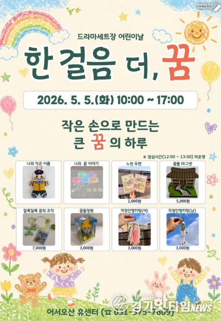 [경기핫타임뉴스=김삼영 기자] 오산시는 오는 5월 5일 어린이날을 맞아 오산 드라마세트장 일원에서 어린이와 가족이 함께 즐길 수 있는 체험 프로그램 ‘한 걸음 더, 꿈’을 운영한다고 밝혔다.