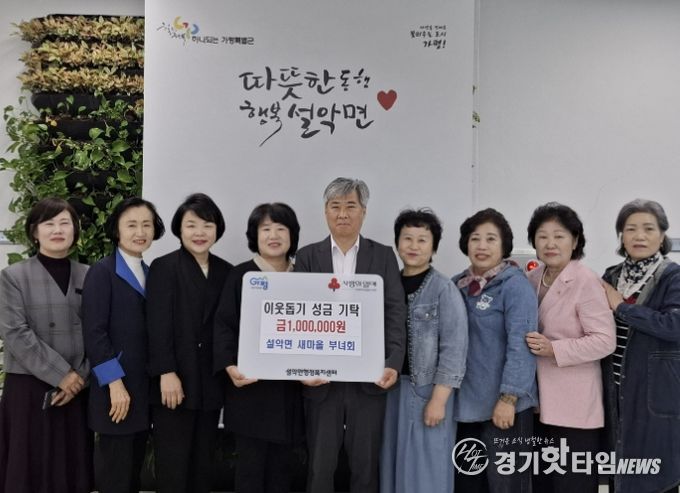 [경기핫타임뉴스=김형철 기자] 가평군 설악면 새마을부녀회 회원들은 최근 설악면 행정복지센터를 찾아 관내 취약계층을 위한 이웃돕기 성금 100만원을 기탁했다.