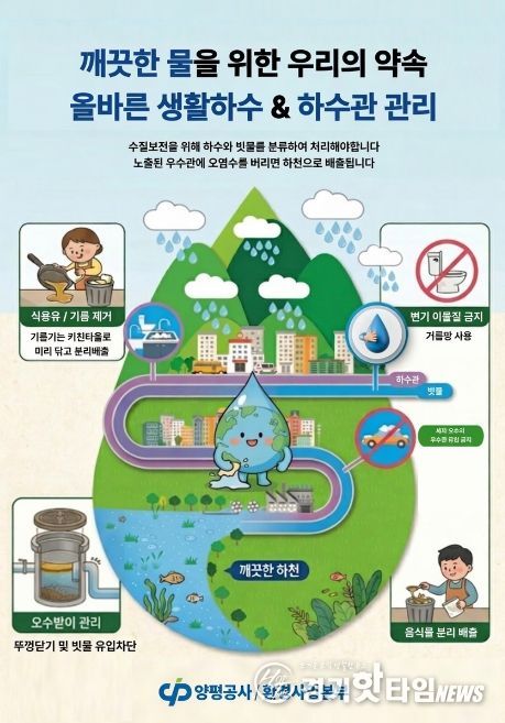 [경기핫타임뉴스=김형철 기자] 양평공사은 군민의 삶이 행복한 자연 친화적인 양평을 구현하기 위해 ‘2026년 올바른 생활하수 배출 및 빗물받이 관리 홍보 활동’을 본격적으로 추진한다고 밝혔다.