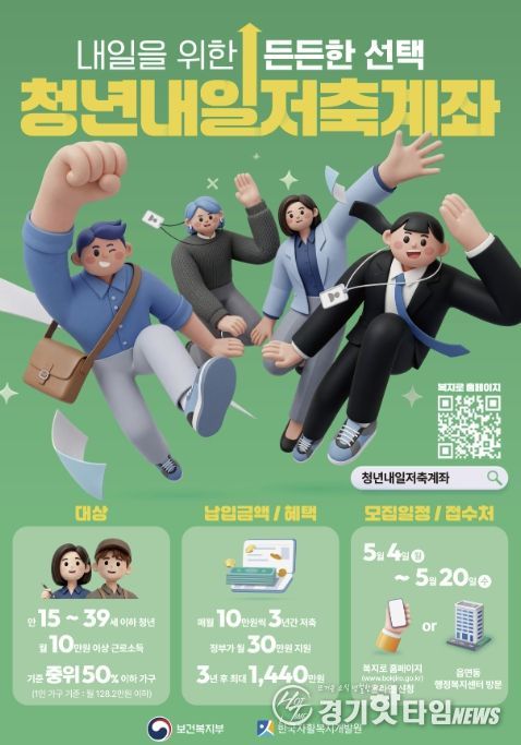 [경기핫타임뉴스=김형철 기자] 부천시는 일하는 저소득층 청년의 안정적인 사회 정착과 자산 형성을 지원하기 위해 ‘2026년 청년내일저축계좌’ 신규 가입자를 5월 4일부터 5월 20일까지 모집한다.