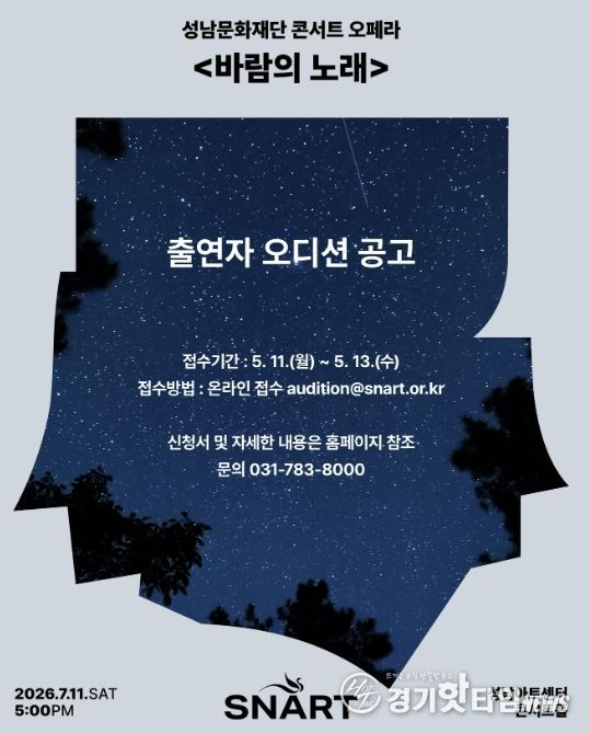 [경기핫타임뉴스=김삼영 기자] 성남문화재단은 콘서트 오페라 ‘바람의 노래’ 무대를 빛낼 주역 성악가를 선발하는 오디션을 개최한다.