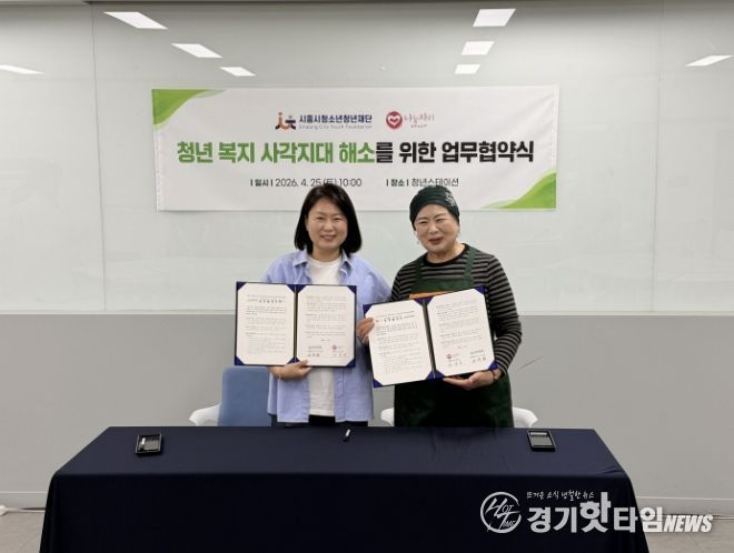 [경기핫타임뉴스=김삼영 기자] (재)시흥시청소년청년재단은 지난 4월 25일 나눔자리문화공동체와 지역의 청년 복지 사각지대를 해소하고 고립·은둔 청년 지원을 강화하기 위한 업무협약(MOU)을 체결했다고 밝혔다.