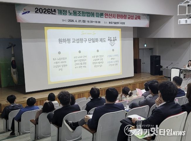 [경기핫타임뉴스=김삼영 기자] 안산시는 지난 27일 농업기술센터 대강당에서 5급 이상 간부공무원을 대상으로 원·하청 교섭 교육을 진행했다고 28일 밝혔다.