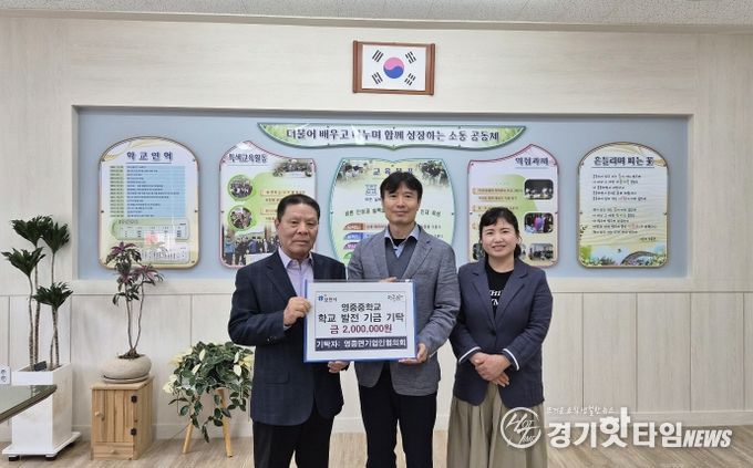 [경기핫타임뉴스=김형철 기자] 포천시 영중면 행정복지센터는 영중면기업인협의회가 지난 27일 지역 인재 양성과 영중중학교 학생 복지 지원을 위해 학교발전기금 200만 원을 기탁했다고 밝혔다.