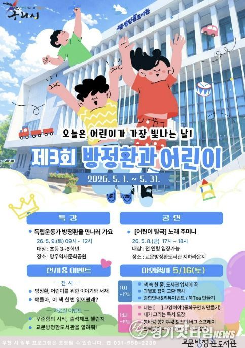 행사 기간에는 상설 행사와 전시도 함께 운영된다. 도서관 방문 임무 행사인 ▲꾸준함의 시작, 출석 점검 도전 잇기 ▲교문방정환도서관을 알려주세요! 등에 참여하면 다양한 혜택을 받을 수 있다. 아울러 ‘방정환 어린이를 위한 이야기와 서재’를 주제로 기념 전시가 열리며, 어린이를 위한 특별 도서 추천도 함께 진행될 예정이다.