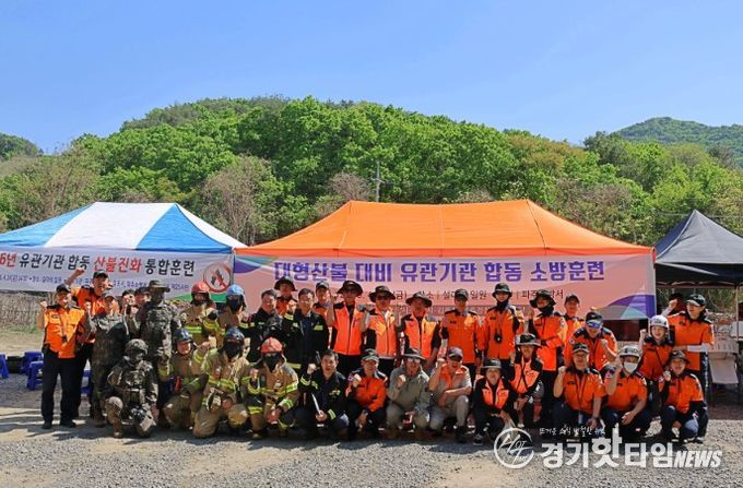 [경기핫타임뉴스=김형철 기자] 파주소방서는 지난 4월 24일 오후 파주시 적성면 설마리 일원에서 경기 북부 최초로 가장 많은 유관기관이 참여한 대형산불 대비 유관기관 합동 소방훈련을 실시했다.