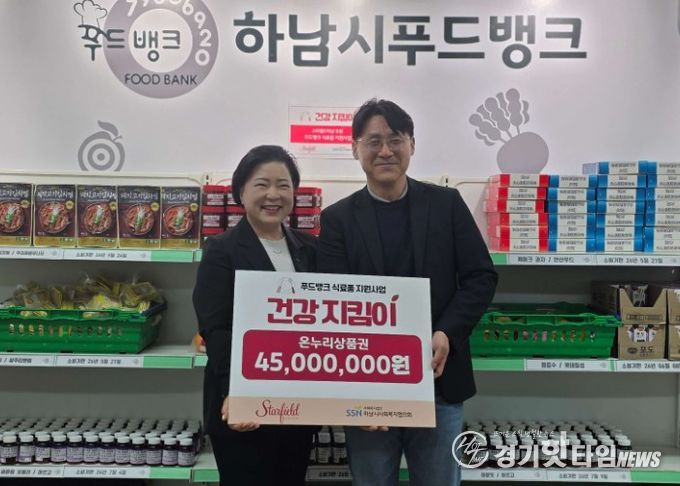 [경기핫타임뉴스=김형철 기자] 사회복지법인 하남시사회복지협의회는 4월 27일 스타필드하남(점장 유영인)으로부터 온누리상품권 4,500만원을 기탁받았다. 전달식은 이날 협의회에서 진행됐으며, 기탁된 상품권은 하남시푸드뱅크를 이용하는 취약계층 3,500세대에게 먹거리로 지원될 예정이다.