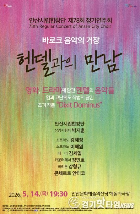 [경기핫타임뉴스=김삼영 기자] 안산시는 내달 14일 오후 7시 30분 안산문화예술의전당 해돋이극장에서 안산시립합창단 제78회 정기연주회 '헨델과의 만남'을 개최한다고 29일 밝혔다.