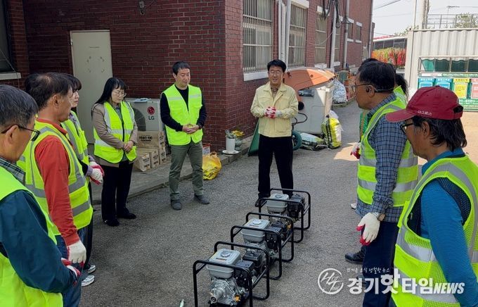 이번 점검에는 자율방재단원과 관계 공무원이 함께 참여해 양수기와 수중펌프 등 수방장비의 작동 상태를 확인하고, 실제 침수 상황을 가정한 시운전을 통해 현장 대응력을 점검했다.