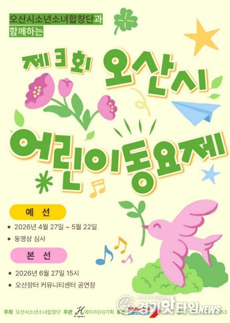 [경기핫타임뉴스=김삼영 기자] 오산시는 오산시소년소녀합창단이 오는 6월 27일 오산장터 커뮤니티센터 공연장에서 ‘제3회 오산시 어린이 동요제’를 개최한다고 밝혔다. 이번 행사는 사라져가는 동요를 널리 알리고, 어린이들에게 아름다운 우리말과 올바른 정서를 기를 수 있는 기회를 제공하기 위해 마련됐다.