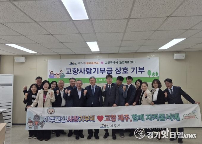 [경기핫타임뉴스=김형철 기자] 고양특례시는 4월 29일 고양시농업기술센터에서 제주시 농수축산국과 함께 고향사랑기부금 상호 기부 전달식을 개최하고, 양 도시 간 상생 협력과 우호 증진을 다짐했다.