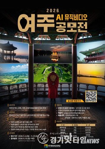 [경기핫타임뉴스=김형철 기자] 여주세종문화관광재단은 여주시 관광 콘텐츠를 활용한 시민 참여형 영상 제작 프로젝트인 '2026 여주 AI 뮤직비디오 공모전'을 개최한다고 밝혔다.