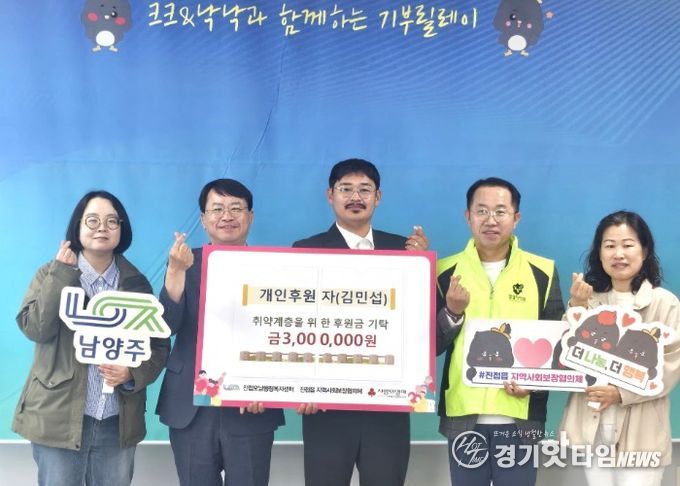[경기핫타임뉴스=김형철 기자] 남양주시는 29일 진접오남행정복지센터에서 김민섭씨가 취약계층 지원을 위해 후원금 300만 원을 전달했다고 밝혔다.