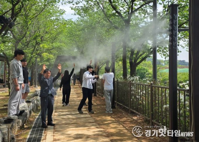 [경기핫타임뉴스=김형철 기자] 남양주시 진건읍은 여름철 폭염 대응을 위해 사능천 맨발걷기길에 ‘쿨링포그(Cooling Fog)’를 설치했다고 29일 밝혔다.